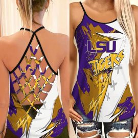 Lsu Tigers Freestyle Painting Logo 3D Printed Criss Cross Tanktop