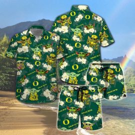 Oregon Ducks Yoda Short Sleeve Button Up Tropical Aloha Hawaiian Shirts