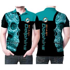 Gift for Husband Gift for Dad Miami Dolphins Skull 3D Printed Polo Shirt