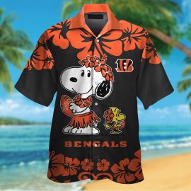 Cincinnati Bengals Snoopy Short Sleeve Button Up Tropical Aloha Hawaiian Shirts NFL