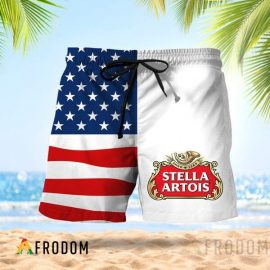 Vintage USA Flag Fourth Of July Stella Artois Unique Design Cool Style Hawaiian Shorts