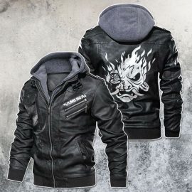 Black Brown Leather Jacket For Men Samurai Mask Cyberpunk 2077 Motorcycle