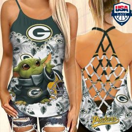 Baby Yoda Green Bay Packers NFL Criss Cross Back Tank Top