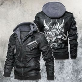 Black Brown Leather Jacket For Men Samurai Devil Mask Cyberpunk 2077 Motorcycle