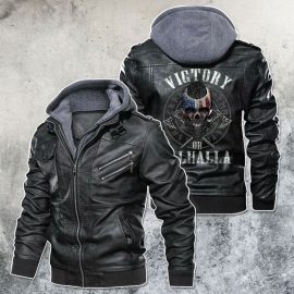 Black Brown Leather Jacket For Men Victory Or Valhalla Skull
