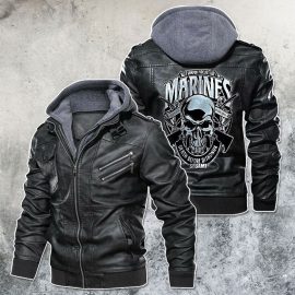 Black Brown Leather Jacket For Men Marines Pride Death Before Dishonor Skull