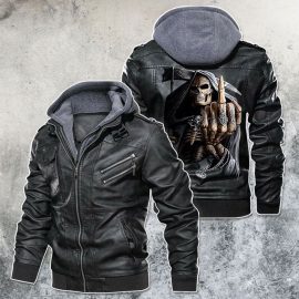 Black Brown Leather Jacket For Men I Fear No Death Motorcycle Skull