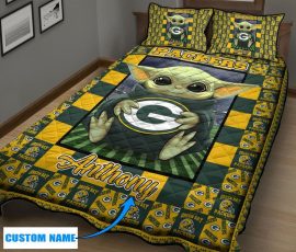 Green Bay Packers Baby Yoda Custom Name Bedding Set