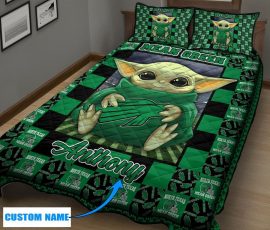 North Texas Mean Green Baby Yoda Custom Name Bedding Set
