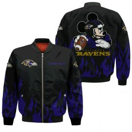 Baltimore Ravens NFL Football Team Disney Mickey Custom Name Personalized Bomber Jacket For Fans