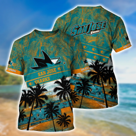 San Jose Special Sharks Palm Tree Pattern Short Sleeve Unique Design Gift Idea