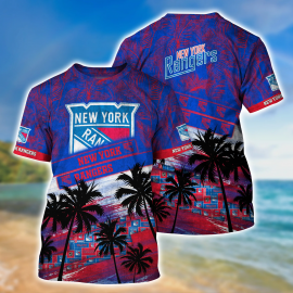 New York Special Rangers Palm Tree Pattern Short Sleeve Unique Design Gift Idea