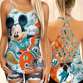 Miami Dolphins Lava Skulls Tiger Criss Cross Tanktop