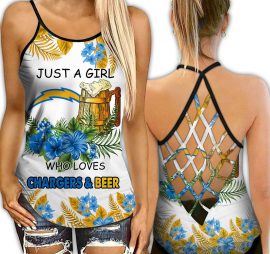 Los Angeles Chargers Girl NFL Active Workout Criss Cross Tank Tops