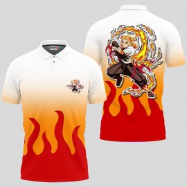 Gift Ideas Kyojuro Rengoku Polo Shirt Custom Anime Kimetsu Costume Merch Clothes SR1052