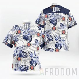Boho Tropical Flowers Miller Lite Button Hawaii Shirt Aloha Beach Holiday