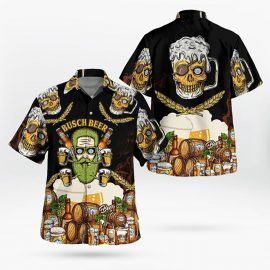 Busch Beer Barley Old Man Face Skull 364 Short Sleeve Aloha Beach Hawaiian Shirt