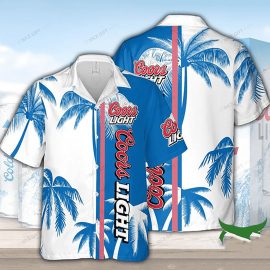 Coors Light Palm Tree Hawaiian Graphic Print Short Sleeve Hawaiian Casual Shirt
