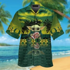 Oregon Ducks Baby Yoda Short Sleeve Button Up Tropical Aloha Hawaiian Shirts For Men Women NCAA