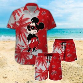 Ohio State Buckeyes Mickey Mouse Short Sleeve Button Up Tropical Aloha Hawaiian Shirts For Men Women