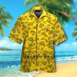 Iowa Hawkeyes Short Sleeve Button Up Tropical Aloha Hawaiian Shirts NCAA