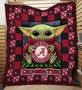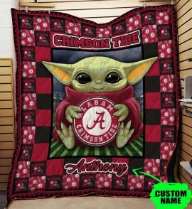 Alabama Crimson Tide Fleece Quilt Blanket Baby Yoda NCAA Custom Name