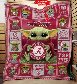 Alabama Crimson Tide Fleece Quilt Blanket Baby Yoda NCAA 03 Custom Name