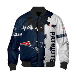 New England Patriots Bomber Jacket Graphic Heart Ecg Line