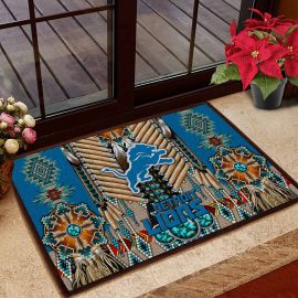 Detroit Lions Logo Native American Fabric Entrance Doormat