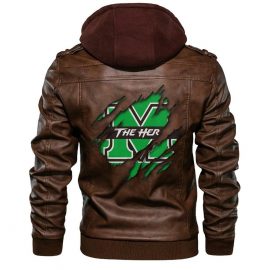 Marshall Thundering Herd NCAA Leather Jacket With Removable Hood