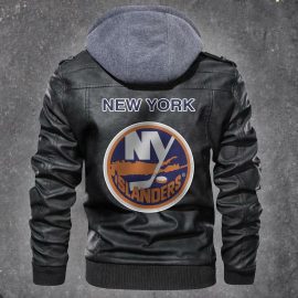 New York Islanders Nhl Hockey Leather Jacket With Removable Hood