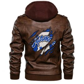 Miami Heat Black Leather Jacket With Removable Hood With Removable Hood