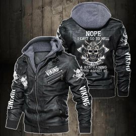 Nope I Cant Go To Hell Personalized Name The Viking Soul Leather Jacket With Removable Hood