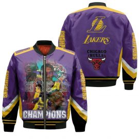 Kobe Bryant Michael J Lebron James Champions Lakers Printed Bomber Jacket