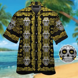 Iowa Hawkeyes Skull Short Sleeve Button Up Tropical Aloha Hawaiian Shirts NFL