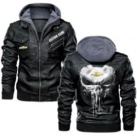 Custom Name Punisher Skull Chevrolet Personalized Leather Jacket Warm Jacket Winter Outer Wear