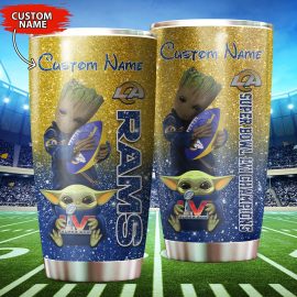 Los Angeles Rams Baby Yoda Groot Super Bowl LVI Champions Custom Name Stainless Steel Tumblers Cup