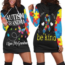 Autism Grandma I Love My Grandson Colorful Butterfly Hoodie Dress