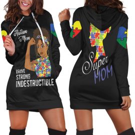 Autism Mom Brave Strong Indestructible Hoodie Dress