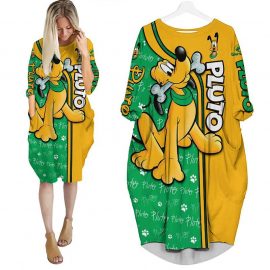Pluto Dog Green Cute Disney Cartoon Summer Vacation Women Girls Batwing Pocket Dress LP10