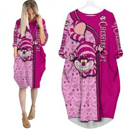 Pink Chesire Cat Pattern Disney Cartoon Summer Vacation Women Girls Batwing Pocket Dress LP28