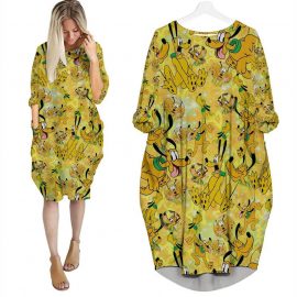 Pluto Dog Yellow Pattern Cute Disney Cartoon Summer Vacation Women Girls Batwing Pocket Dress LP15