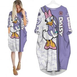 Purple Daisy Duck Pattern Disney Cartoon Summer Vacation Women Girls Batwing Pocket Dress LP32
