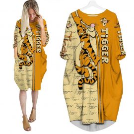 Tigger Winnie The Pooh Cute Disney Cartoon Summer Vacation Women Girls Batwing Pocket Dress LP13
