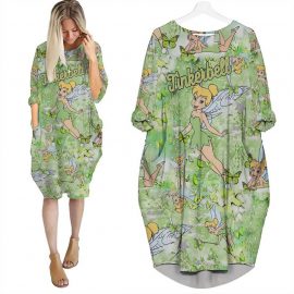 Tinker Bell Butterfly Pixie Dust Green Disney Cartoon Summer Vacation Women Girls Batwing Pocket Dress LP25