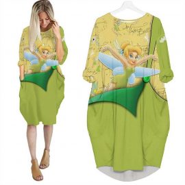 Tinker Bell Green Cute Disney Cartoon Summer Vacation Women Girls Batwing Pocket Dress LP1