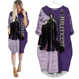 Villians Maleficent Purple Disney Cartoon Summer Vacation Women Girls Batwing Pocket Dress LP42