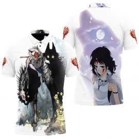 Princess Mononoke Beautiful Girl San Moro-no-kimi Wolf Kodama Spirit Fan Gift 3D All Over Print Polo Shirt SR60