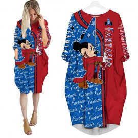 Fantasia Mickey Mouse Blue Disney Cartoon Summer Vacation Women Girl Batwing Pocket Dress LP26