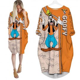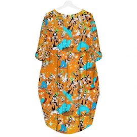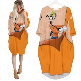 Goofy Dog Orange Cute Disney Cartoon Summer Vacation Women Girls Batwing Pocket Dress LP2